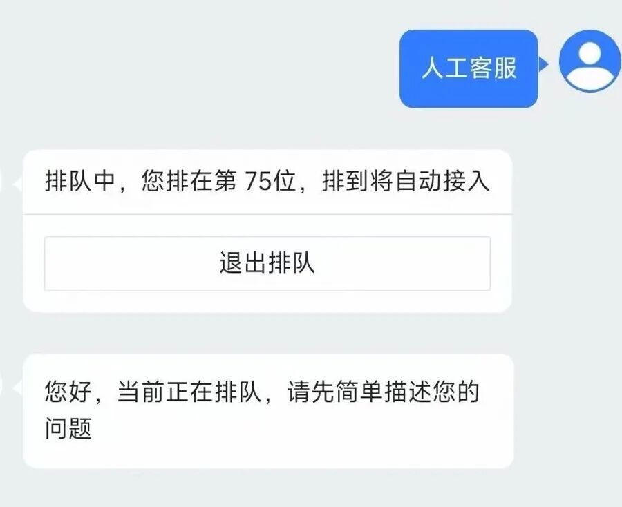 △有商家采取“排队”战术,告知消费者等待人工坐席接待需要排队,但前面人数极多。