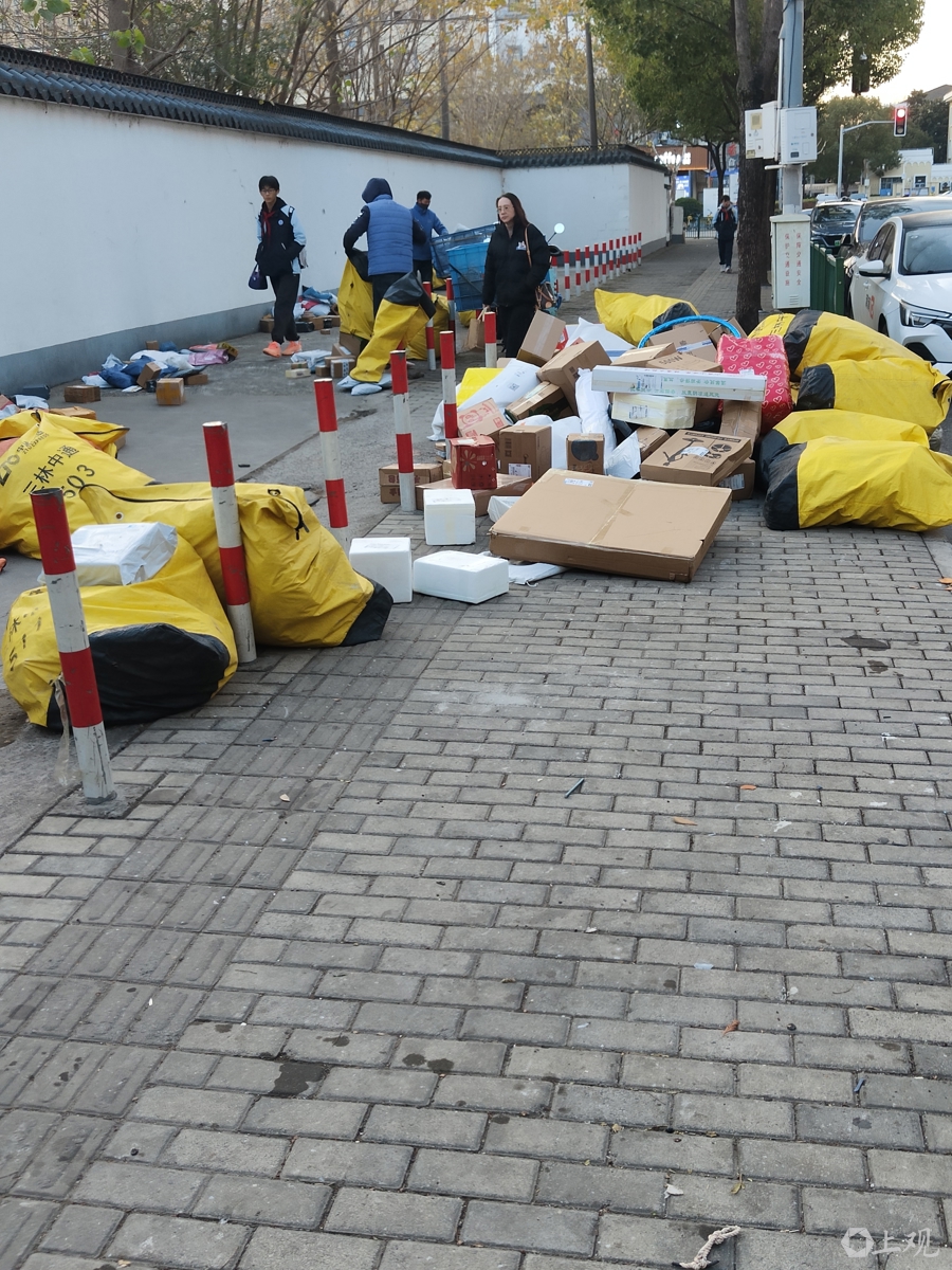 上海育人中学距此仅百米之遥,这段被侵占的人行道正是许多学生上下学的“咽喉要道”。每天早晚高峰,成群结队的学生背着书包途经此处,却因“无路可走”不得不踏入车流。“孩子每次路过这里我都提心吊胆,机动车擦身而过,太危险了!”家长王阿姨激动地说。市民郭先生告诉记者,这种情况已存在数月,周边居民多次投诉,但问题始终未根治。“快递车每天定时来、定时堆,好像这条路是他家仓库。”